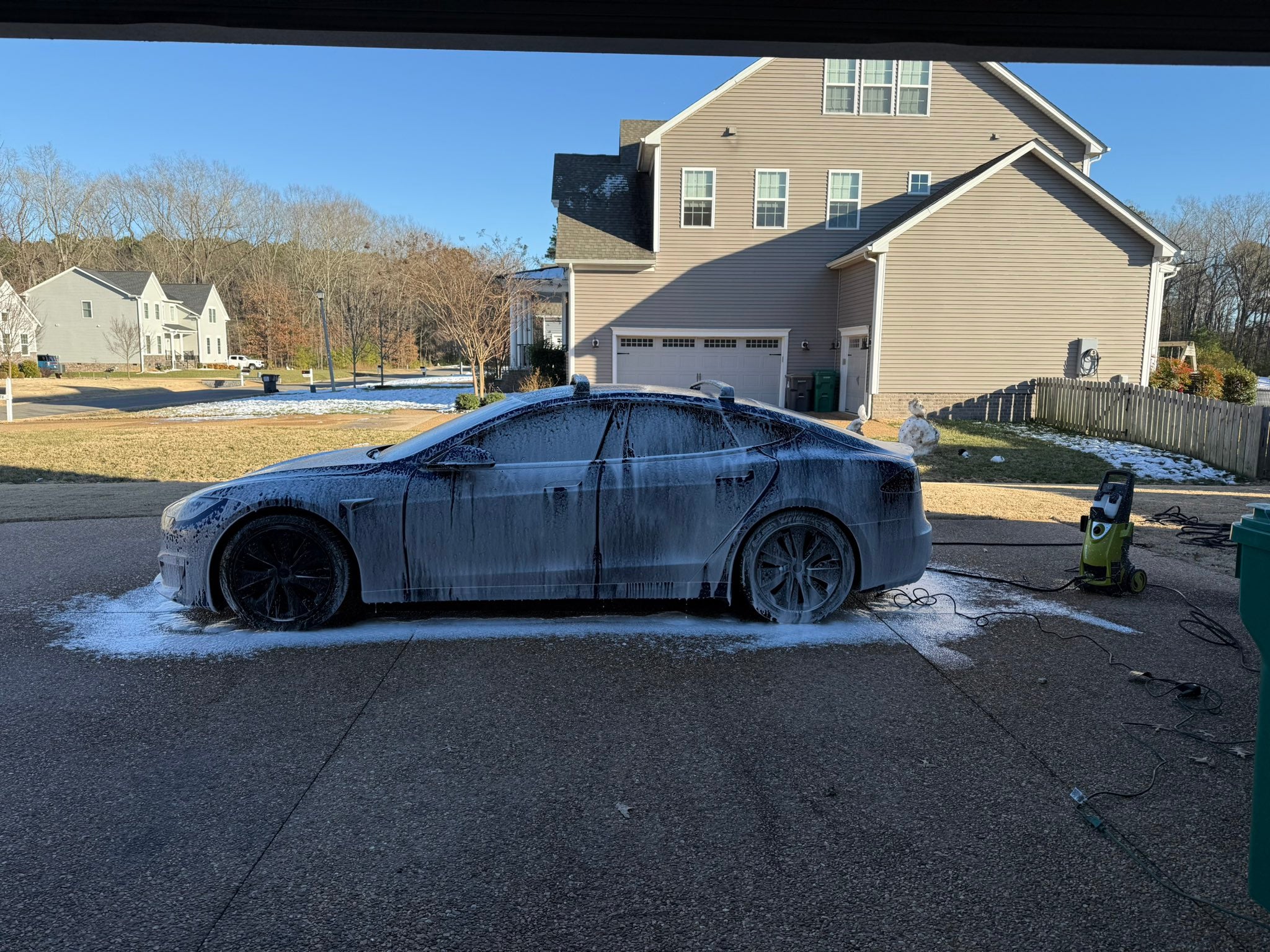 The foaming action is wild. Used barely any soap and still got full coverage across the entire car. Makes detailing at home feel kinda addictive.